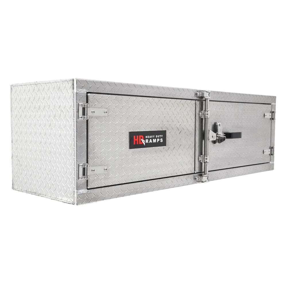 Add external storage to the underbody of flatbed or step deck trailers with the HD Ramps Lockable Underbody Trailer Tool Cabinet.