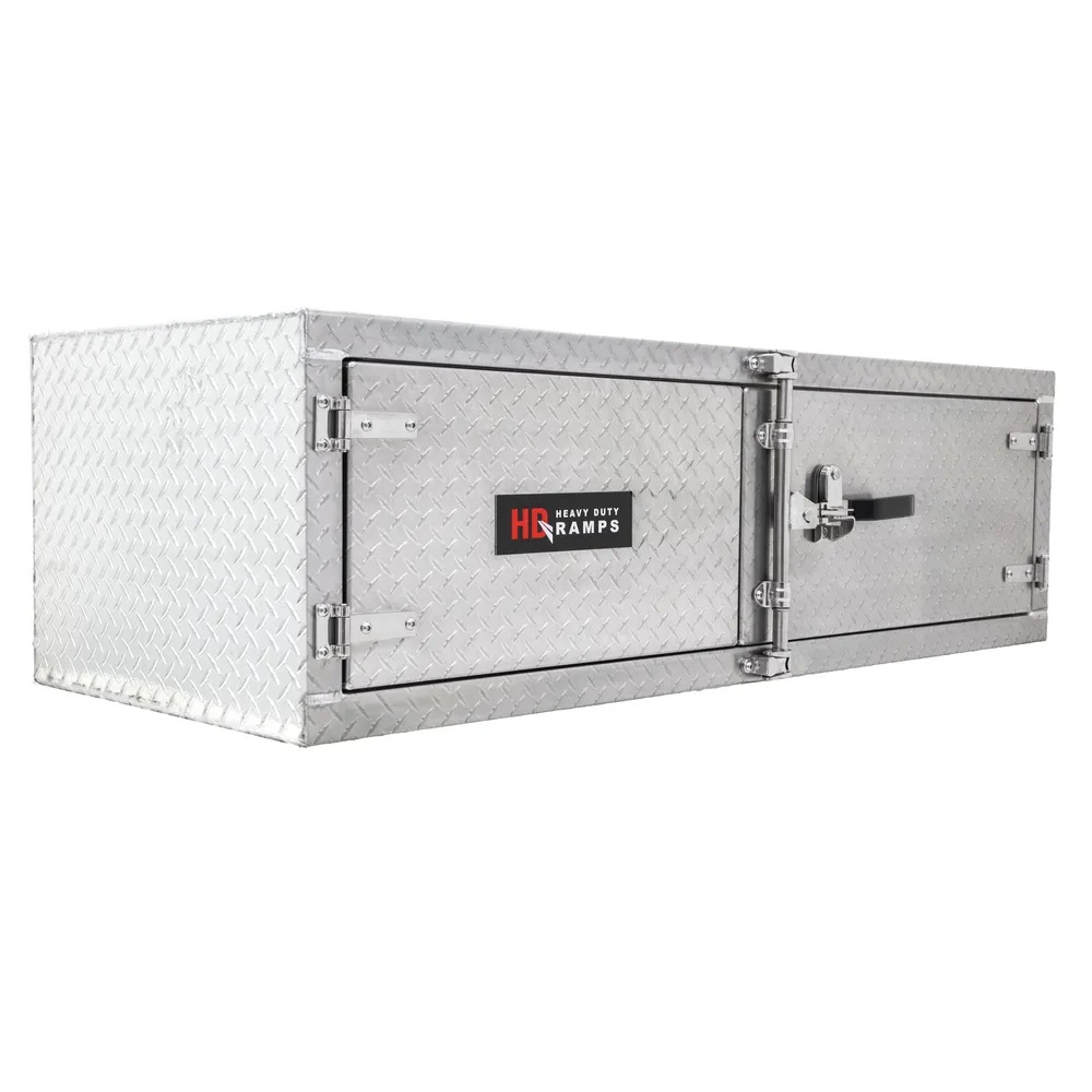 Add external storage to the underbody of flatbed or step deck trailers with the HD Ramps Lockable Underbody Trailer Tool Cabinet.
