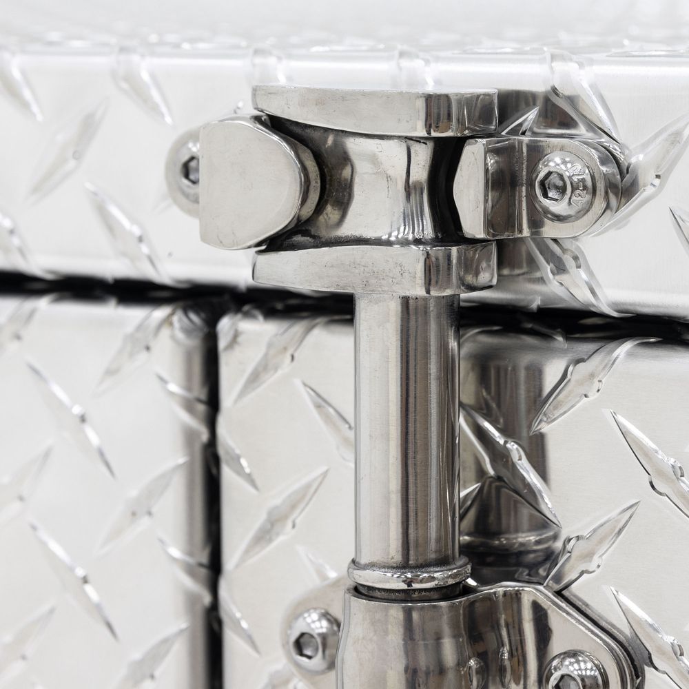 - 1/8" Thick diamond plate aluminum construction with rubber weather seal